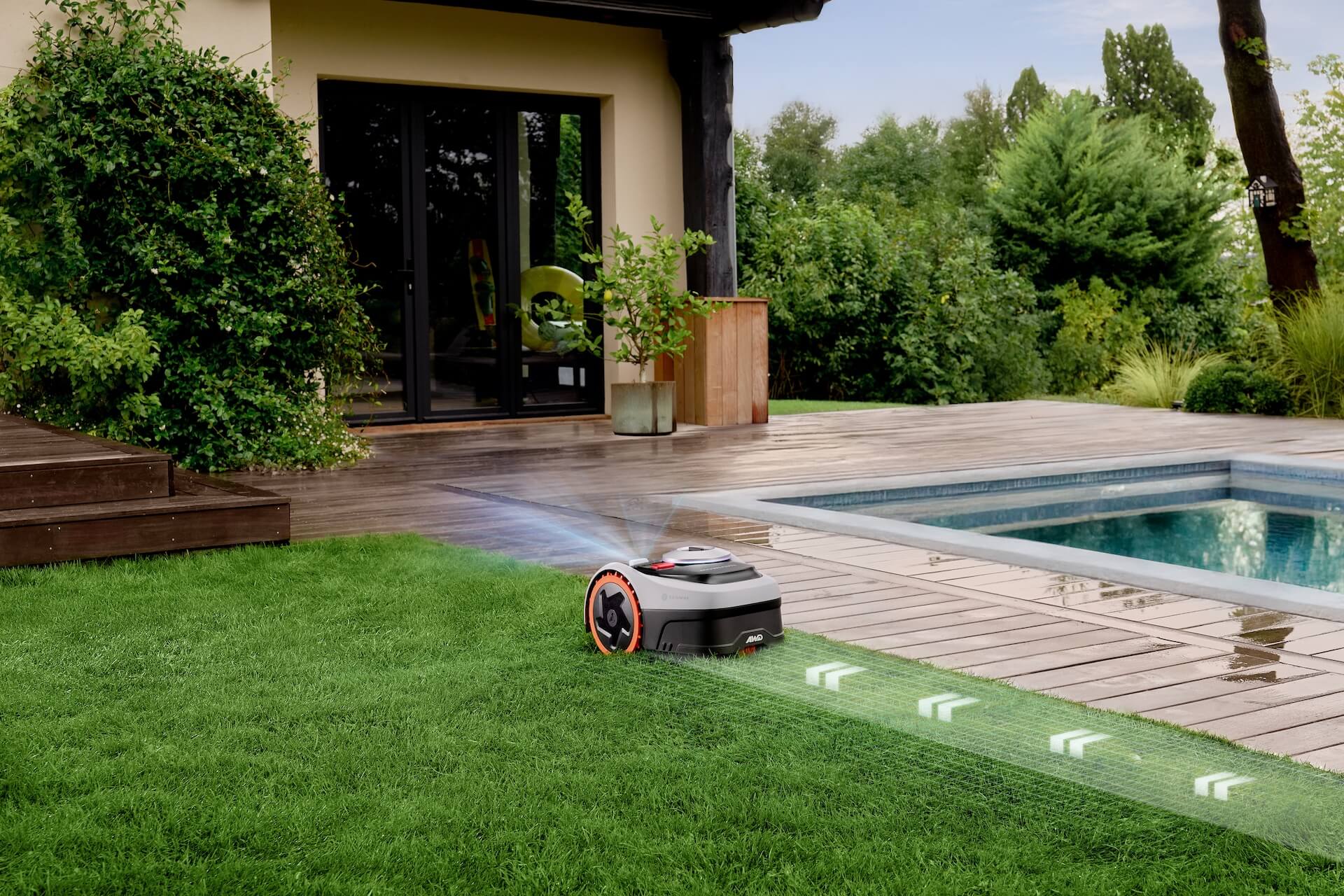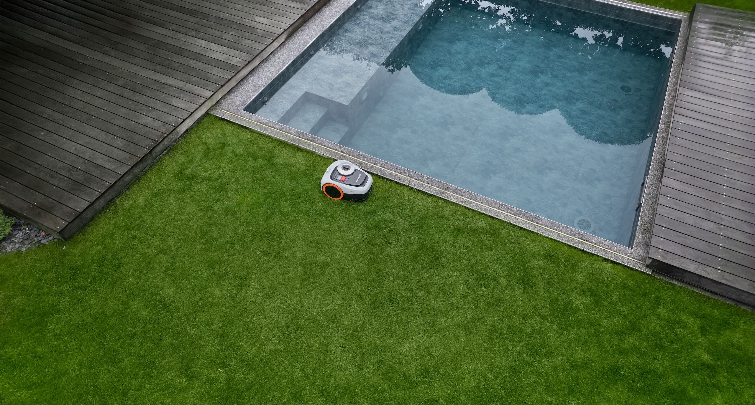 Kapryśna, zmienna aura nie stanowi żadnej bariery dla opisywanego sprzętu, ponieważ został on zaprojektowany z myślą o maksymalnej wytrzymałości na środowisko zewnętrzne. Obudowa urządzenia charakteryzuje się bardzo wysoką klasą szczelności na poziomie IP66, co czyni ją całkowicie odporną na wnikanie pyłu oraz intensywne opady deszczu. Co więcej, w pełni bezpieczna możliwość mycia robota bezpośrednio wodą z węża ogrodowego znacząco ułatwia jego bieżącą konserwację po intensywnej pracy w błocie. System robota został zintegrowany z lokalnymi prognozami meteorologicznymi pobieranymi prosto z internetu, dzięki czemu potrafi on autonomicznie adaptować zaplanowany harmonogram koszenia do rzeczywistej sytuacji za oknem. Gdy urządzenie odnotuje nadciągającą ulewę, silny wiatr lub mróz, zrezygnuje z wyjazdu i cierpliwie przeczeka niepogodę w stacji dokującej.