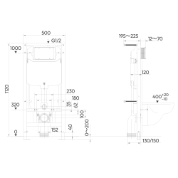 | Szerokość | 400 mm (miska) 500 mm (stelaż) |